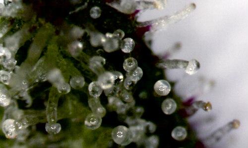Lichtbruine / amberkleurige harskliertjes (niet op een wietplant, maar wel precies wat we bedoelen)